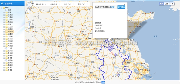 平臺(tái)將災(zāi)情按嚴(yán)重程度分為不同顏色,并在省級(jí)行政圖中以點(diǎn)的形式表示,只要一打開平臺(tái)的行政區(qū)域圖,即可直觀顯示省內(nèi)各區(qū)域的墑情情況如何。