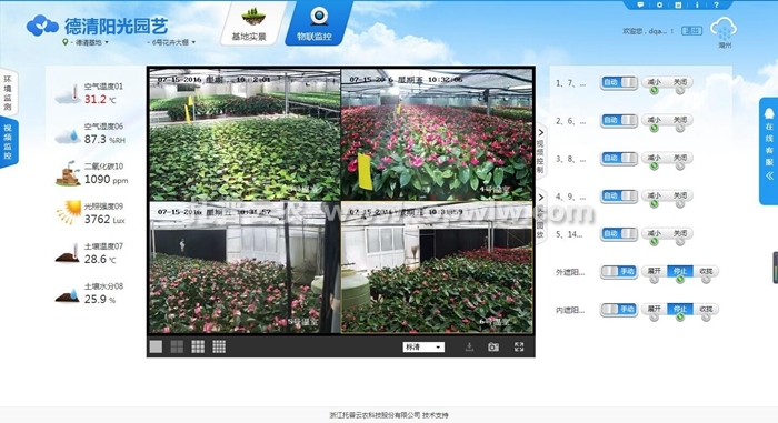 管理區(qū)域內(nèi)放置360°全方位紅外球形攝像機(jī),可清晰直觀的實(shí)時(shí)查看種植區(qū)域作物生長(zhǎng)情況、設(shè)備遠(yuǎn)程控制執(zhí)行情況等。