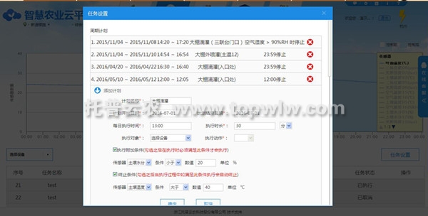 遠(yuǎn)程自動(dòng)控制水肥作業(yè),大棚內(nèi)風(fēng)機(jī)、遮陽、側(cè)窗、濕簾、植物生長(zhǎng)燈等。用戶設(shè)定監(jiān)控條件后,可完全自動(dòng)化運(yùn)行,遠(yuǎn)程控制生產(chǎn)現(xiàn)場(chǎng)的各種農(nóng)用設(shè)施和農(nóng)機(jī)設(shè)備,快速實(shí)現(xiàn)溫室大棚、大田種植自動(dòng)化灌溉作業(yè)。
